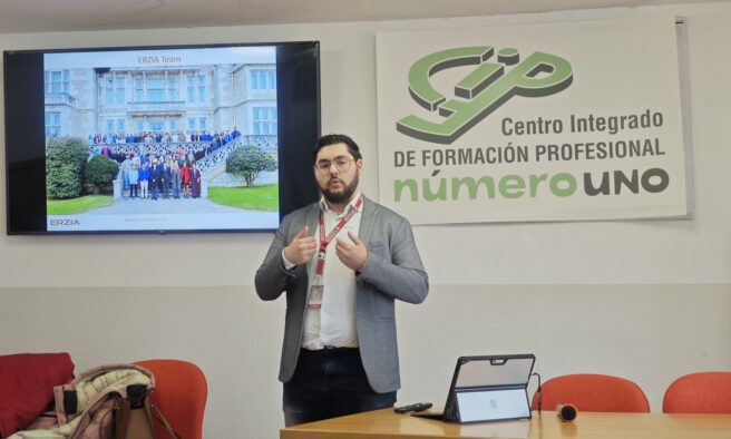 La empresa de telecomunicaciones ERZIA cuenta ya con más de 100 empleados. En esta charla también pudimos contar con la presencia como jefe de equipo de esta empresa cántabra, de un exalumno del departamento de electrónica del CIFP Número Uno, Mario Díaz.