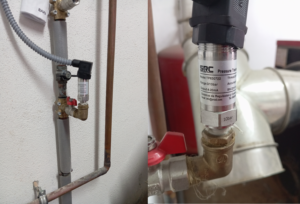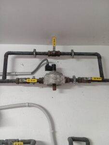 Falta comentar como anécdota y por comentar todos los elementos que encontramos en la sala de calderas que hay un sistema de válvula de seguridad que corta el gas hacia la caldera en caso de que se corte la luz en el cuarto. Este sistema tiene una tubería de bypass por si fuera necesario cambiar la válvula.