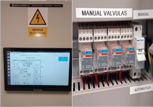 • Modo Manual: Poniendo en manual se fuerzan los relés de la imagen que activan las electroválvulas de las aulas. (Esta señal no se visualiza en el cuadro de mando del sistema).