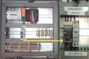 La caldera del edificio principal de electricidad/electrónica puede funcionar en 2 modos, automático y manual. Para ello se dispone de 2 automáticos que deben estar accionados en el mismo modo: