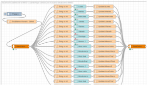 Aquí podemos ver la programación de horarios en Node Red: