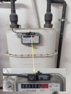 En segundo lugar, abajo están los metros cúbicos de gas consumidos y el caudal. Esto se realiza a través del medidor de pulsos localizado justo encima del contador de la compañía de gas. En el apartado «Medida de gas» de este blog podemos ver detalladamente la forma en que se realiza esta medida.