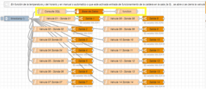 Con estos NODOS SEÑALADOS EN AMARILLO se consulta en la base de datos el valor actual de las consignas de temperatura de cada aula. Esto se necesita para abrir la electroválvula en caso de que la temperatura actual esté por debajo de la consigna.