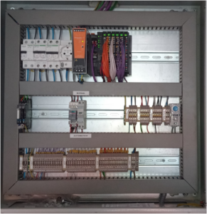Donde se detallan temperaturas caudales y entradas y salidas al PLC que controla la sala. Posteriormente hablaremos de la sala de calderas pero a continuación se indica cómo se realizaría la apertura de cada una de las electroválvulas en caso de que el cerebro NUC lo indique. Así que es necesario volver al cuadro eléctrico de electricidad-electrónica donde se encuentra el PLC 13.3, UC20-WL2000-AC , que tiene acoplado un bloque de 16 salidas digitales que se comunican con los relés de 24 voltios DC y 6 Amperios Weidmuller RSS113024 y estos actuaran sobre sus válvulas de aulas correspondientes: